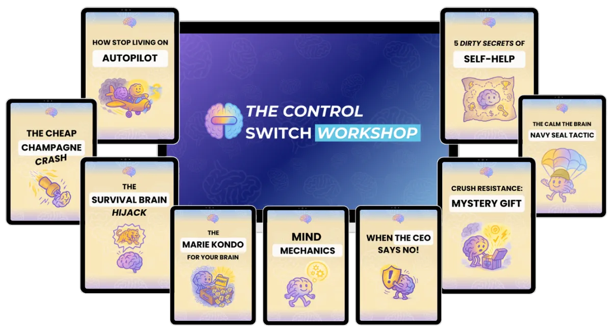 ⚡ Quick-Shift Experiments (We’ll Do Them Live): Not just some theory, ACTION! Real brain hacks you’ll feel instantly. From a 30-second trick Navy SEALs use to calm their nervous system and focus to a sneaky dopamine trick that makes progress addictive.